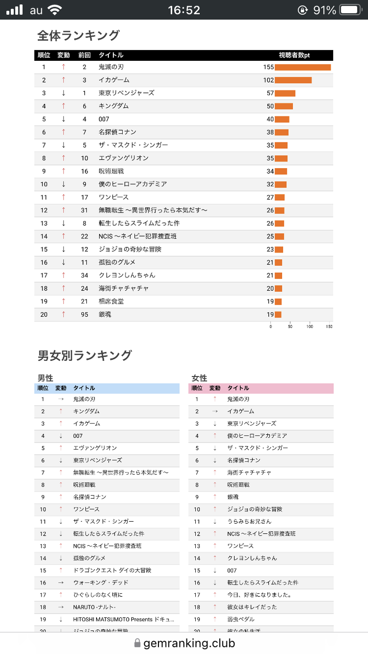 【速報】鬼滅の刃さん、イカゲームに完全勝利wwwwwwwwwwwwww