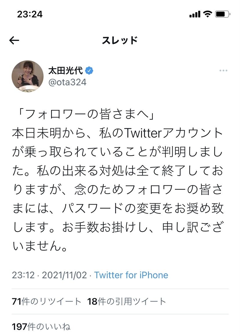 【続報】太田光代さん、Twitterを乗っ取られていた