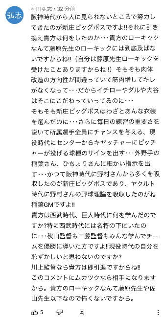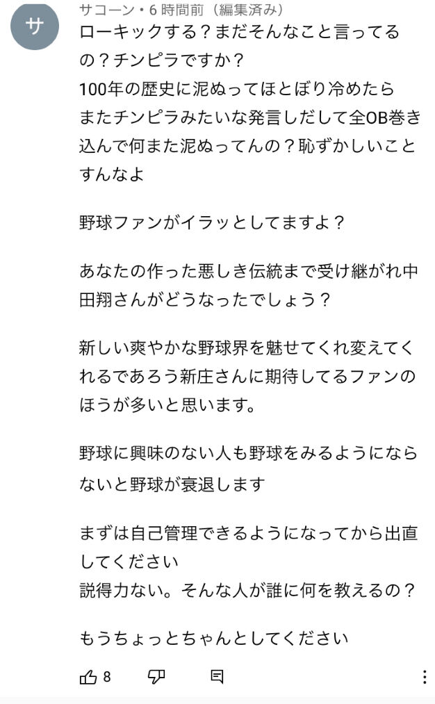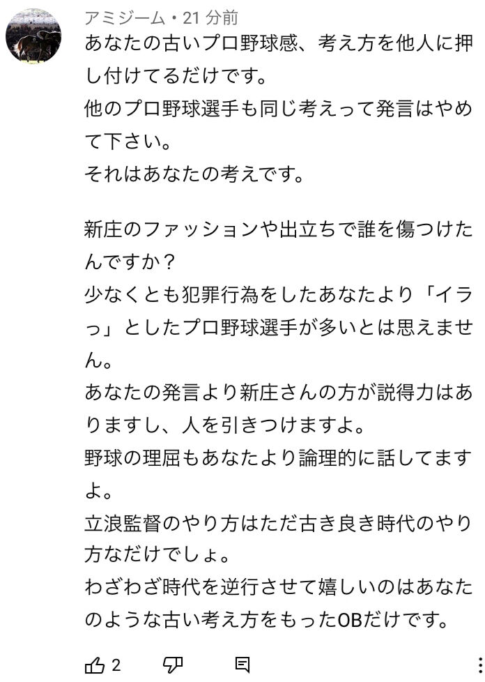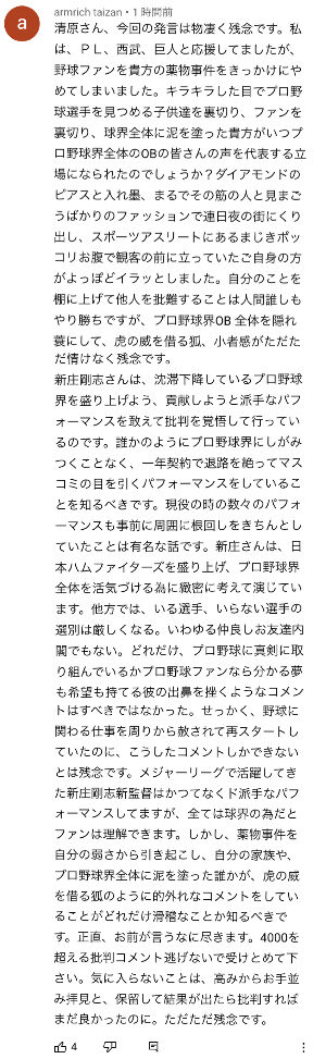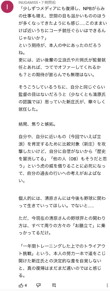 【続報】清原のYouTubeチャンネルに失望コメントが殺到してしまう【新庄】