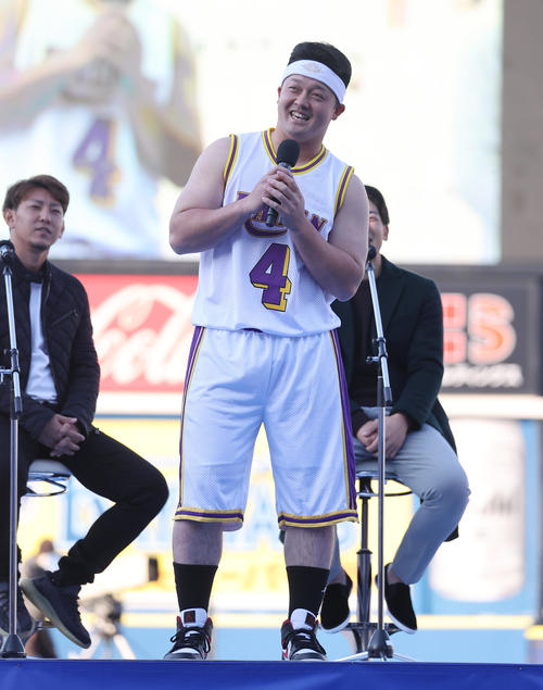 バスケットのユニホームでの登場は前々日、台本が来た時に知った。「本当にいくのかと(驚いた)。喜んでもらえて良かった。堂々としようと思っていた。(先輩が)笑ってくれて良かった」。寒空の中での半袖は「今日は暖かかったので。あそこは寒かったけど」。ファンのためにという思いが勝った。「今年は触れ合うことが少なく、ファンと交流することができてよかった。また来年頑張ろうと思いました」と笑顔で振り返った。