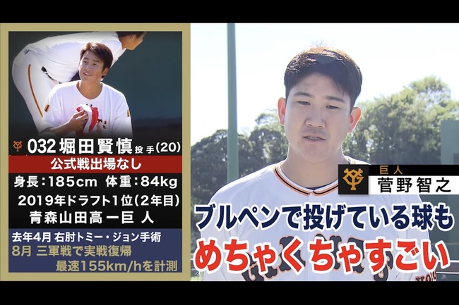 【朗報】菅野智之さん、堀田賢慎をベタ褒めwwww
