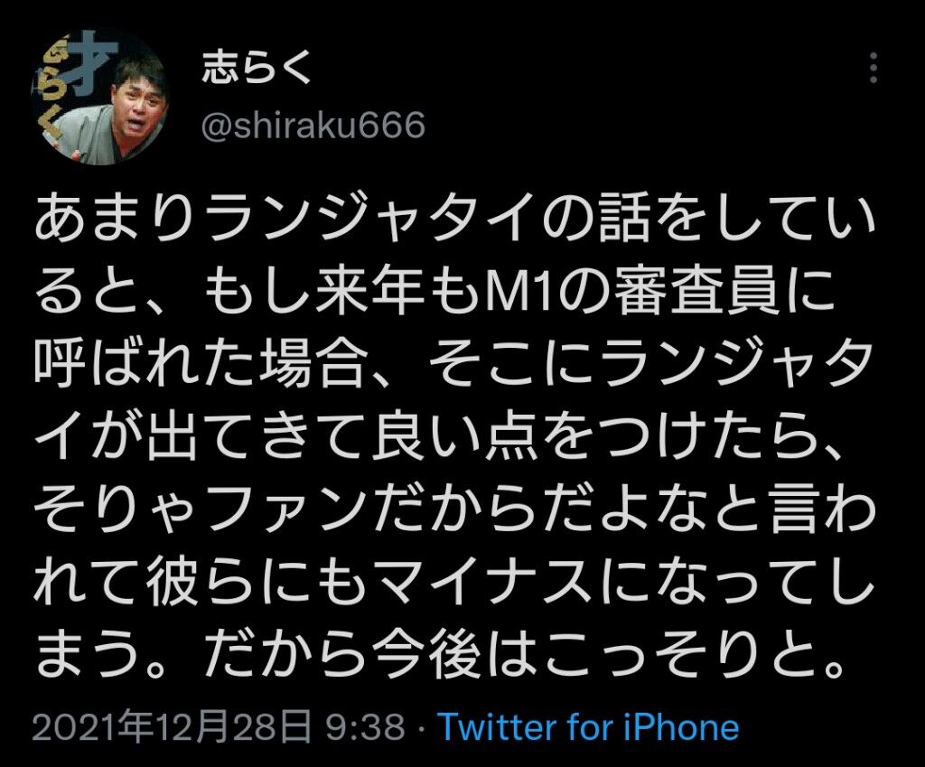 【続報】志らく、まだランジャタイが気になる