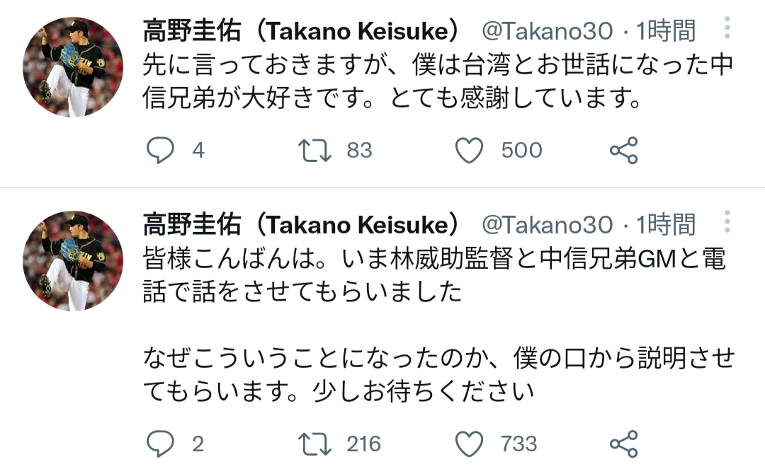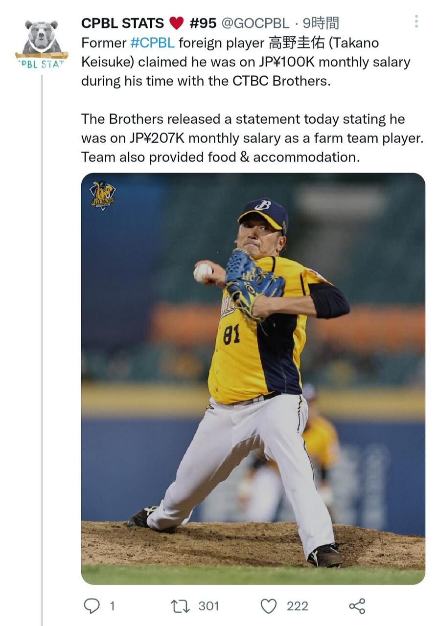 中信兄弟「嘘つけ!高野には月給20万円+食事・宿泊環境も与えてた」と公式声明でブチギレ