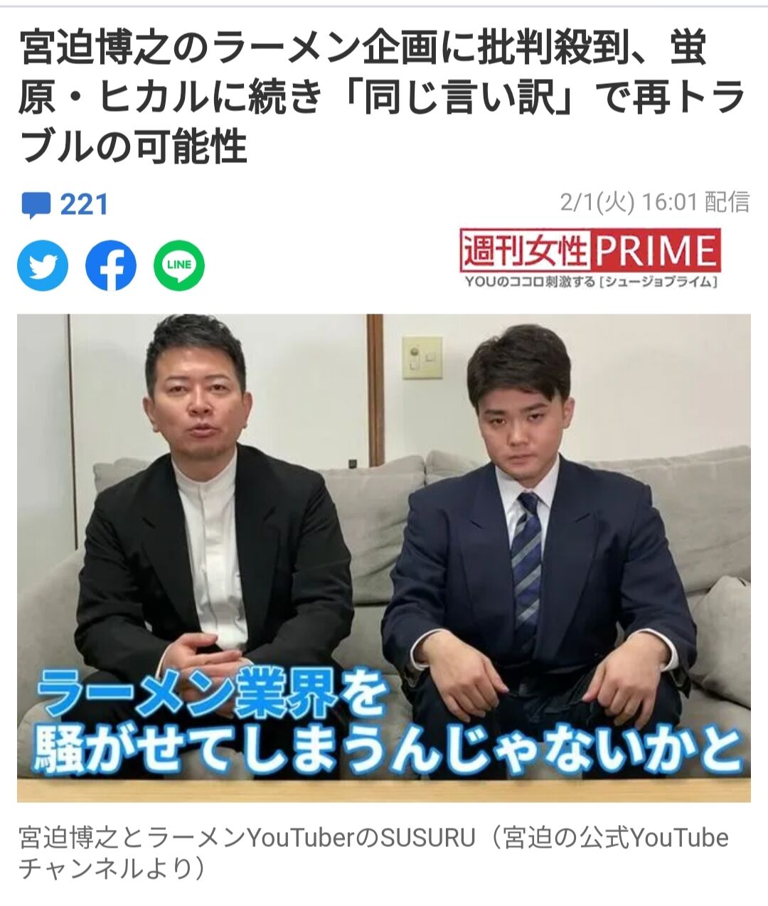 宮迫さん、蛍原、ヒカルを捨てて次はSUSURUとコンビ結成ラーメンで勝負