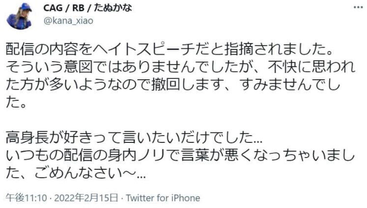 「170cm以下の男は人権ない」発言の女プロゲーマー、解雇決定