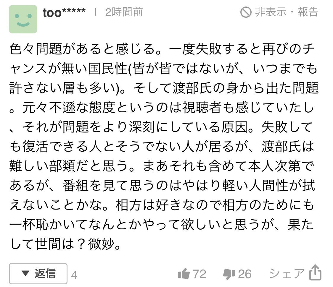 【悲報】アンジャッシュ渡部、たかだか不倫で2年近くも謹慎したのにテレビ復帰でボコボコに叩かれる