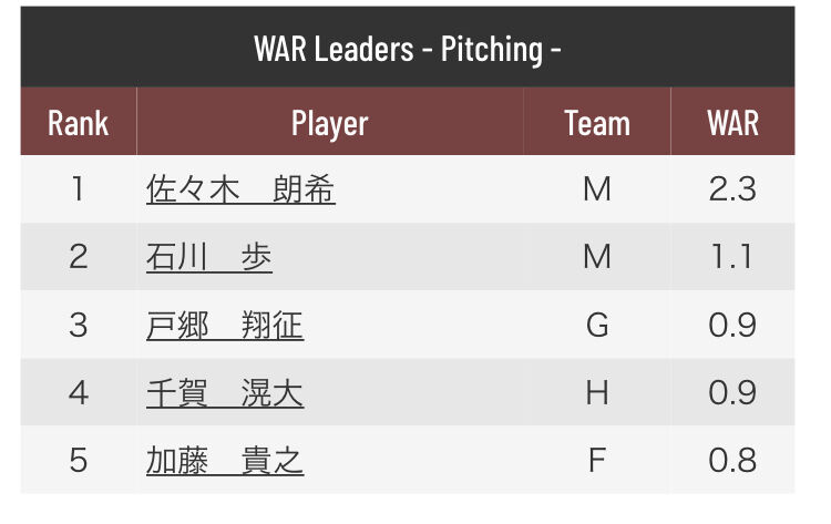 【朗報】佐々木朗希、WAR2.3でブッチギリでトップにwwwwww