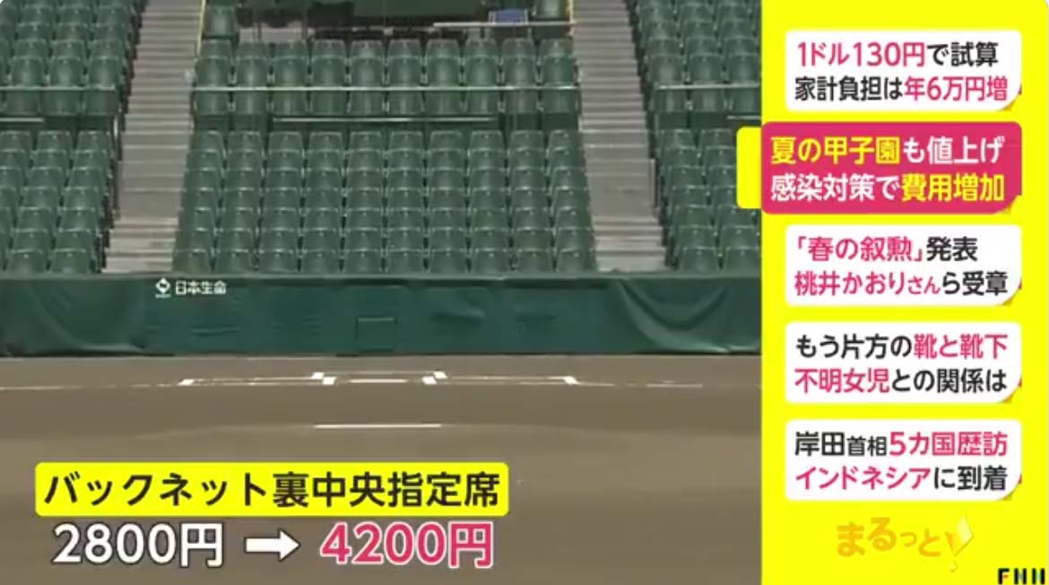 ※ 夏の甲子園も値上げ 感染対策で費用増加
