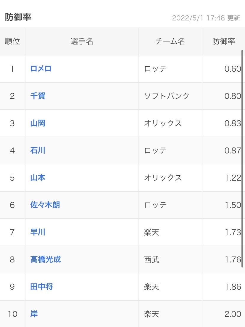 パリーグの投手成績、ぶっ壊れるwwwwwwwwwwww