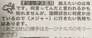 A.オリックス若月捕手「越えたいのは海です。何言ってんだと言われるかも知れませんが、国際試合に何度か出ているので(メジャー)に行きたい気持ちはあります」