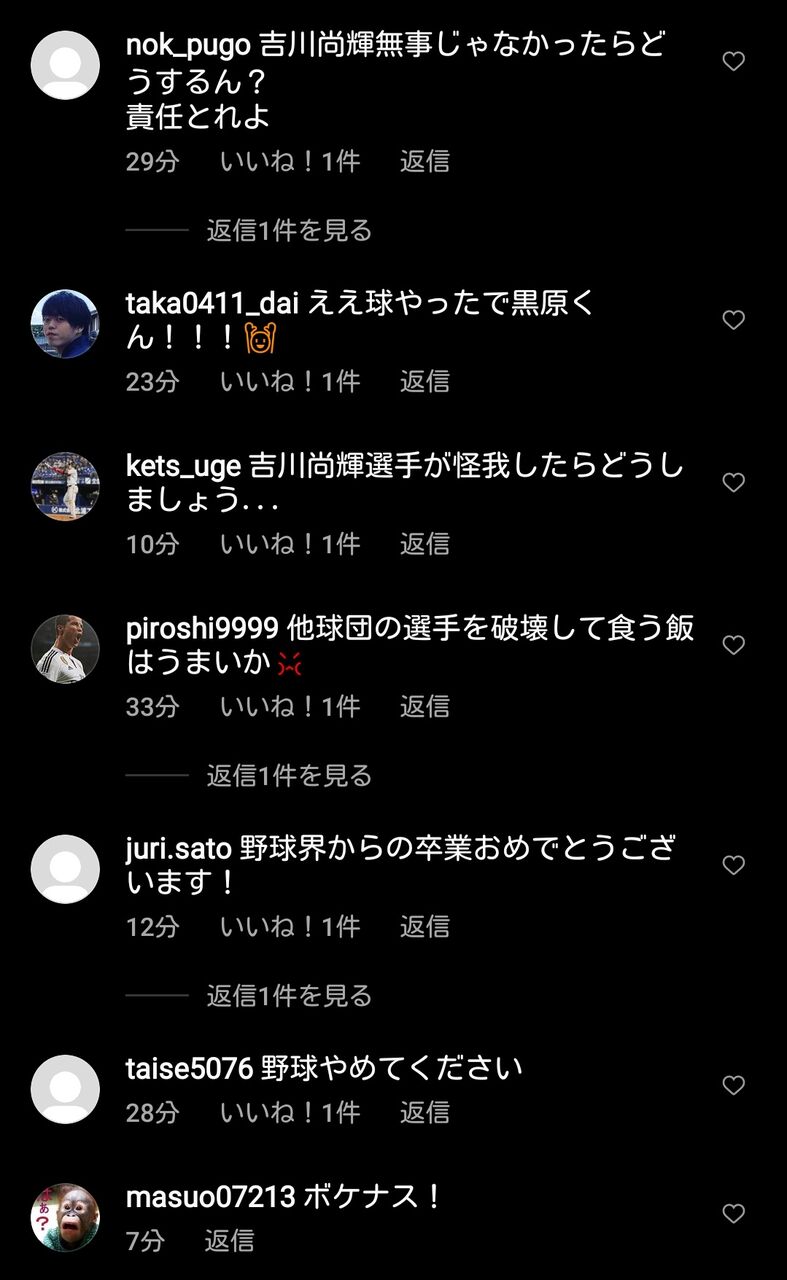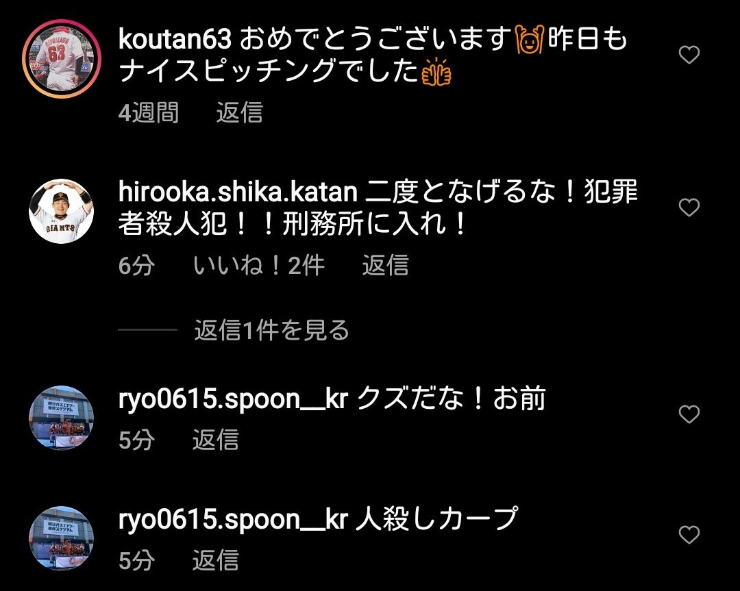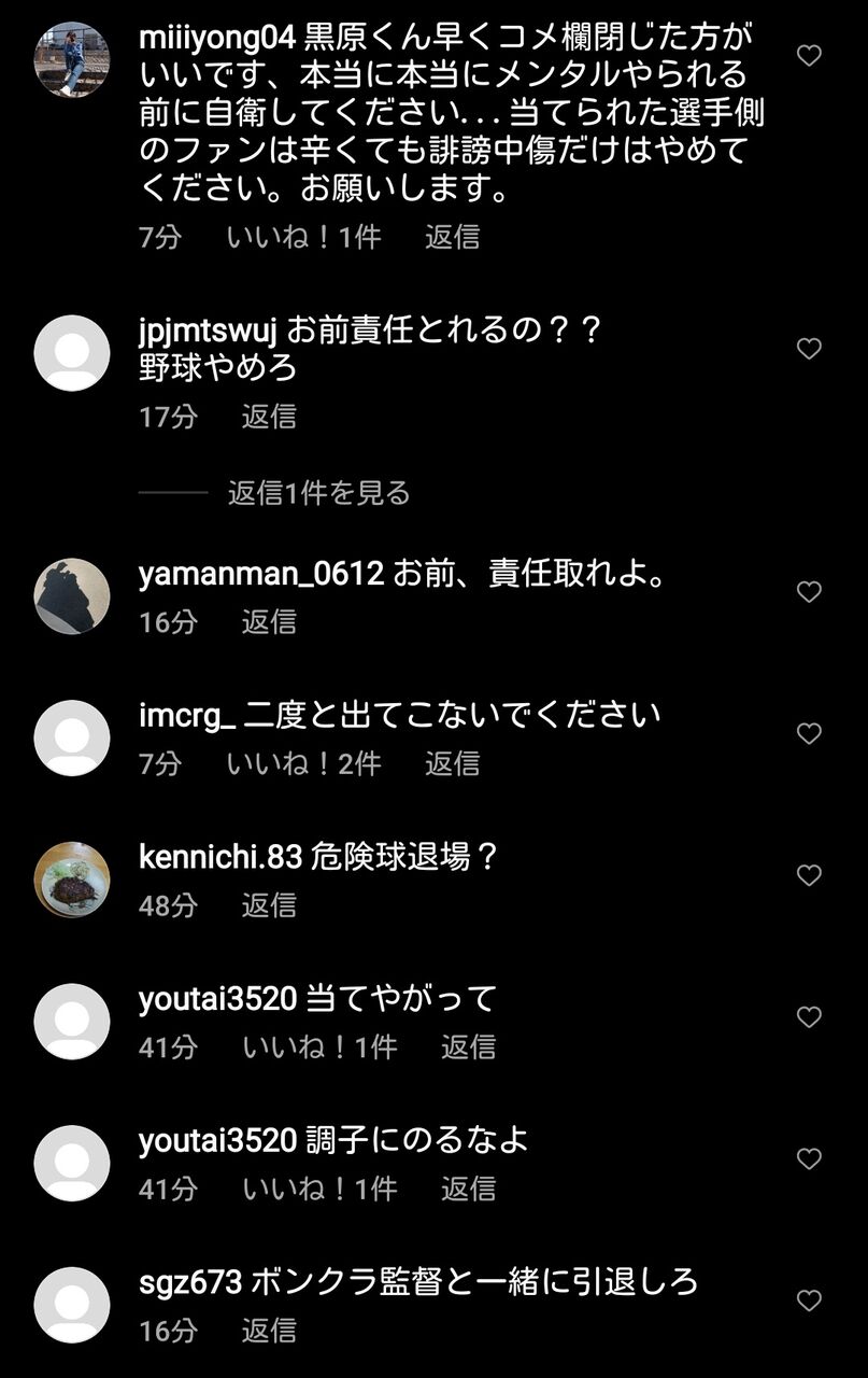 【悲報】巨人ファン、黒原のインスタを荒らしまくってしまうwwwwww