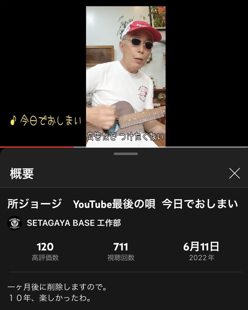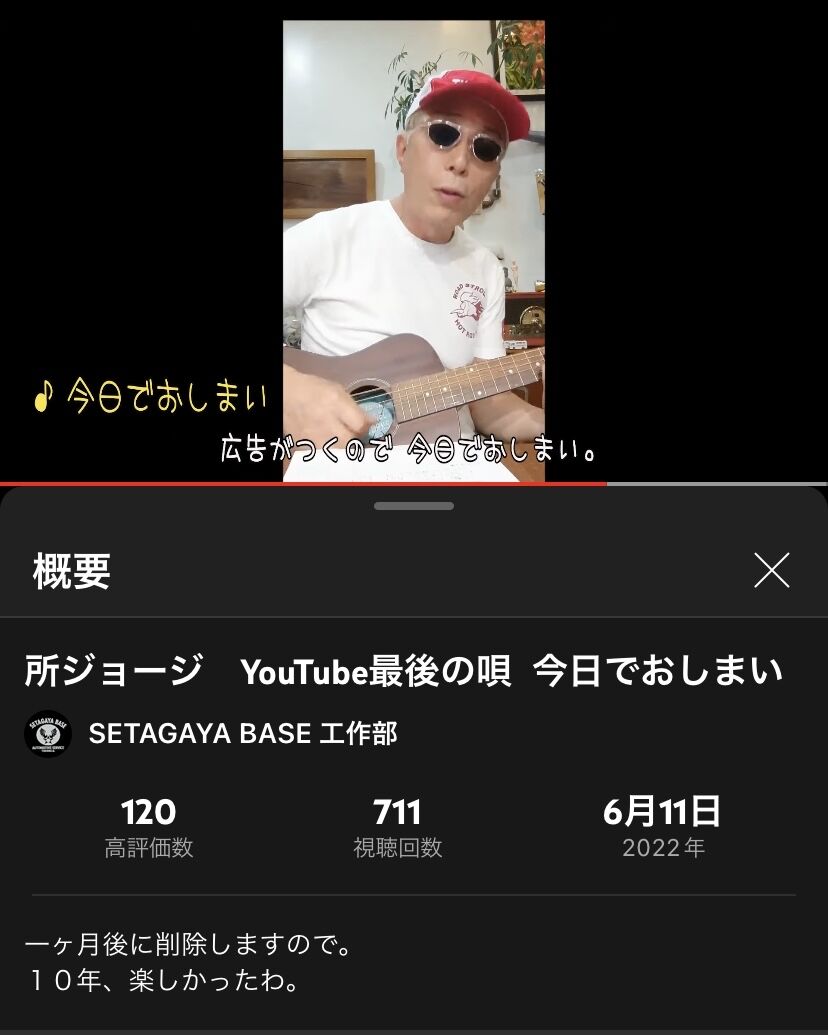 【悲報】所ジョージ、10年やってたYouTubeを終了。理由「広告つけたくないけど勝手につくから」