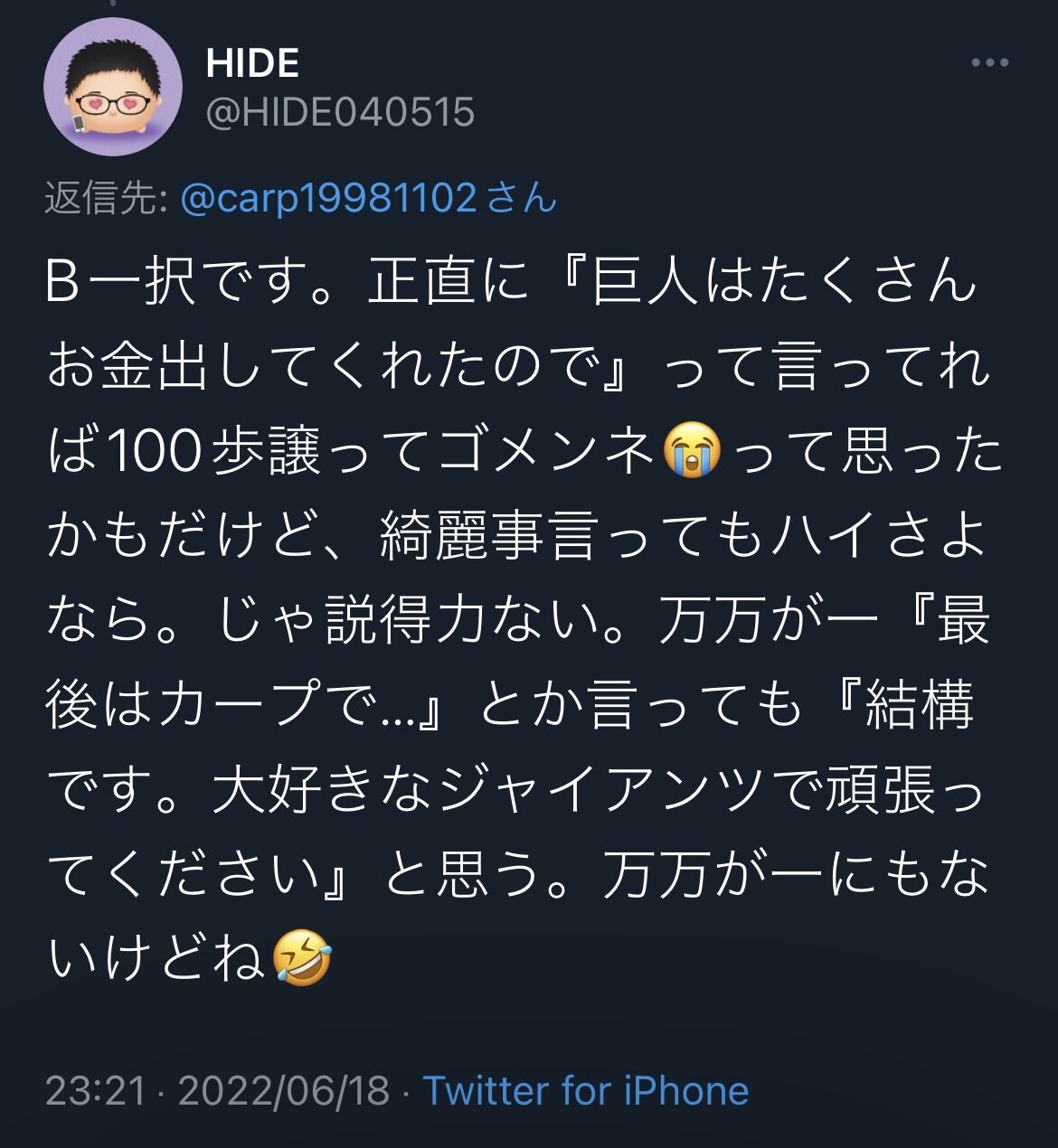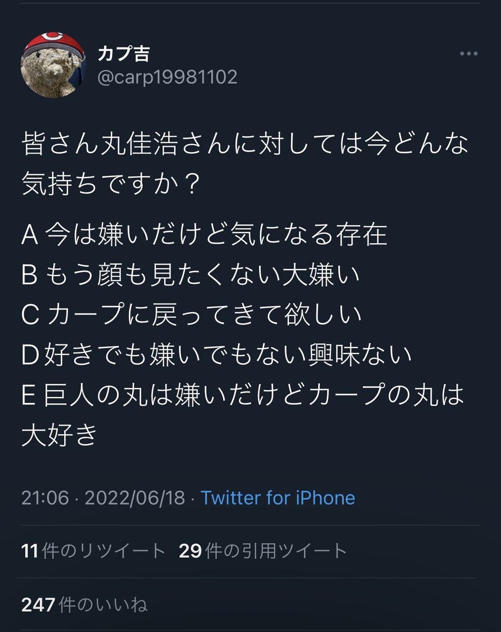 巨人・丸に対する気持ちアンケート・・・