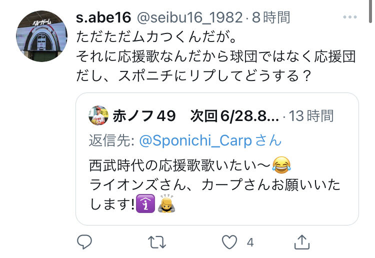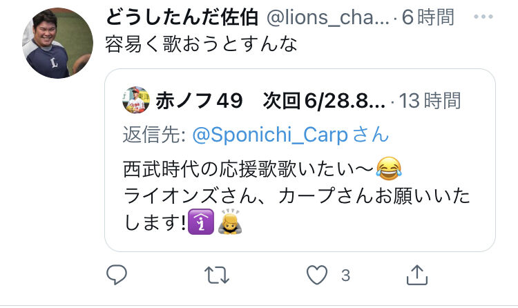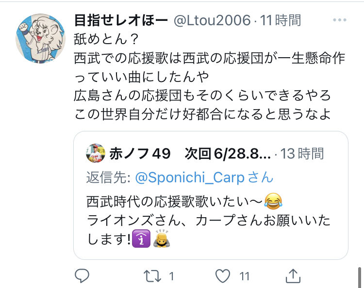 【悲報】カープファン「西武時代の応援歌歌いたい~」←西武ファンブチギレwwww