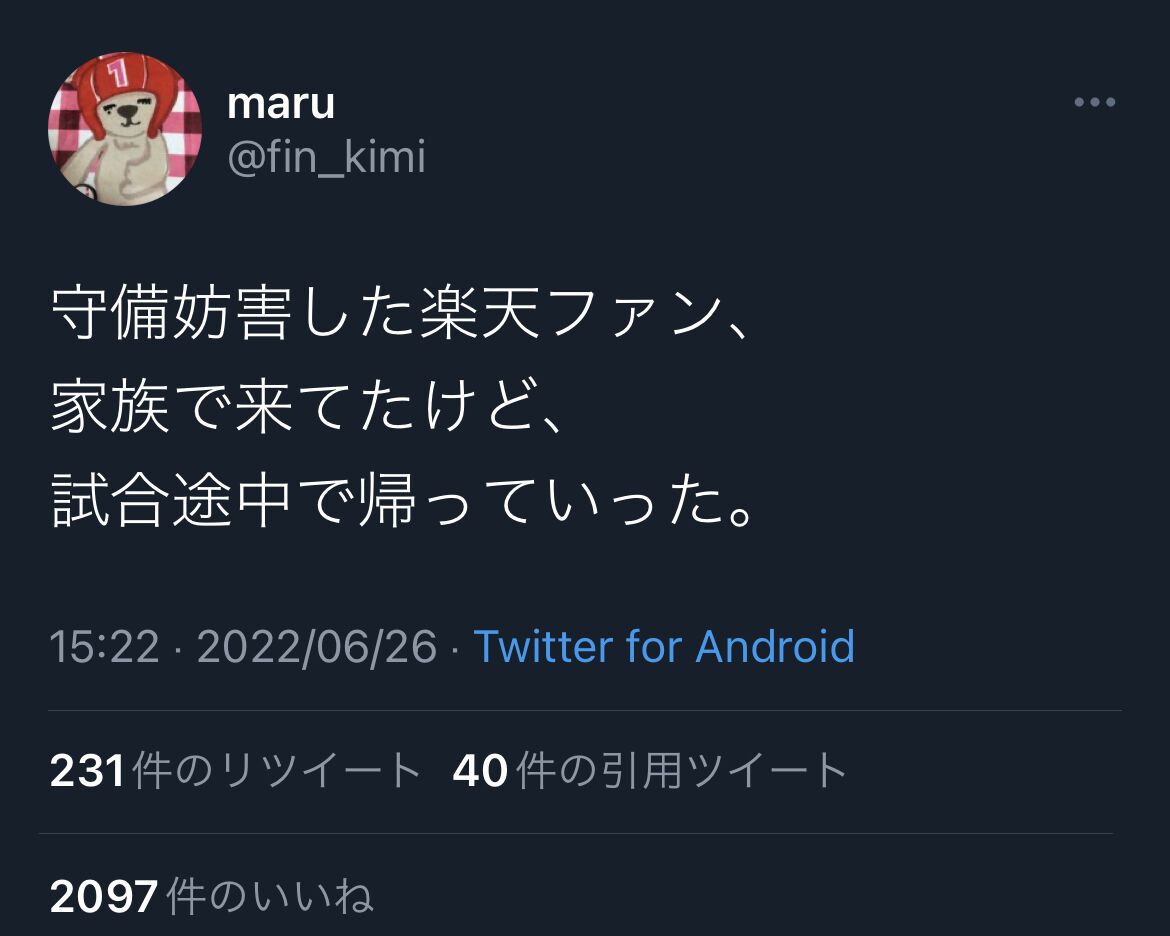 【悲報】守備妨害した楽天ファン、途中で帰っていた