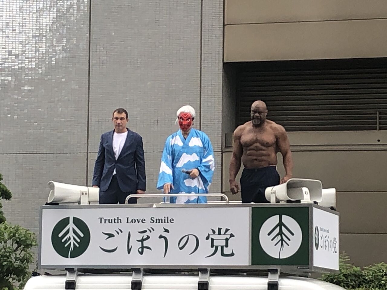 【悲報】ごぼうの党、街頭演説で敵キャラみたいになってしまう