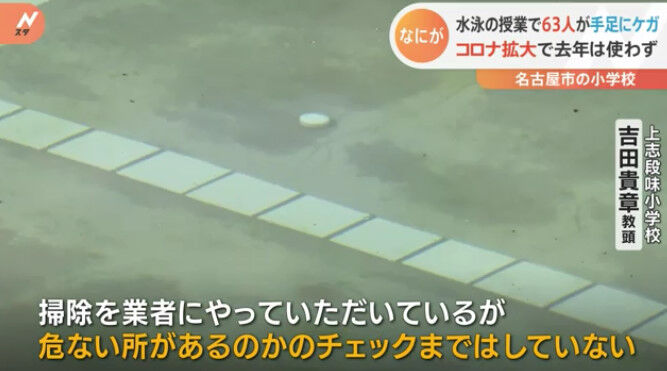名古屋市守山区にある上志段味小学校のプールで6月下旬、2年生から6年生の児童63人に足の甲やひざ、指先に擦り傷などが確認されました。