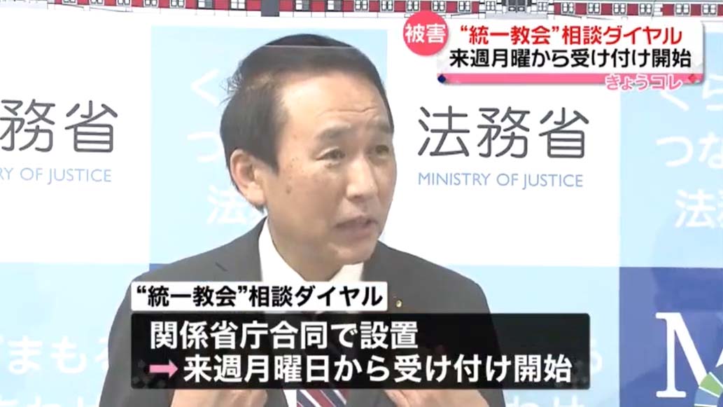 いわゆる統一教会をめぐる問題に対応するため、葉梨法相は2日、関係省庁合同の相談ダイヤルを設置し、来週5日(月)から受け付けを開始すると発表しました。