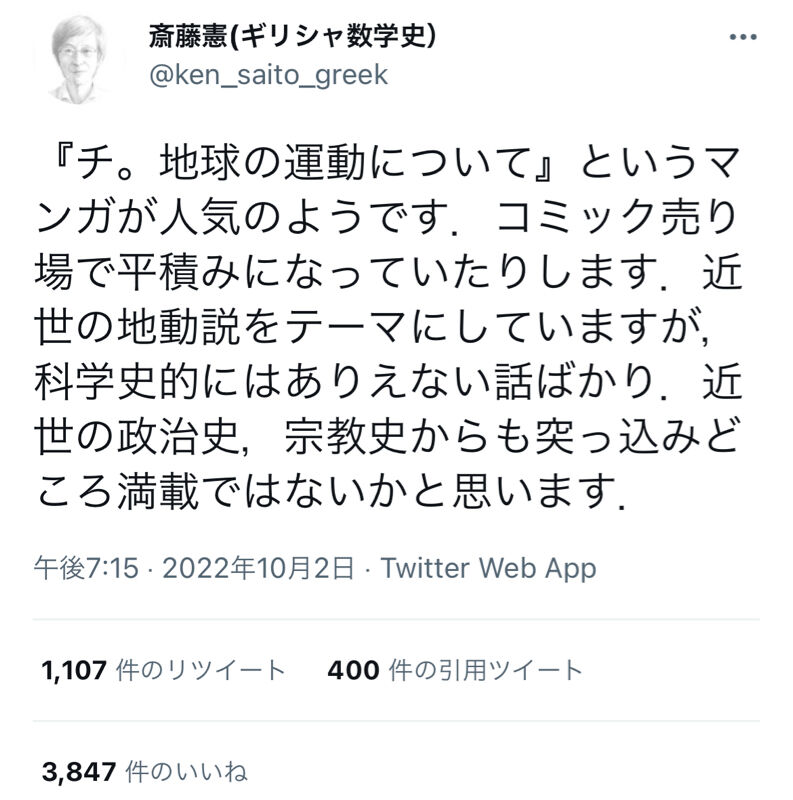 学者「『チ。』という人気マンガは突っ込みどころ満載」→ 炎上