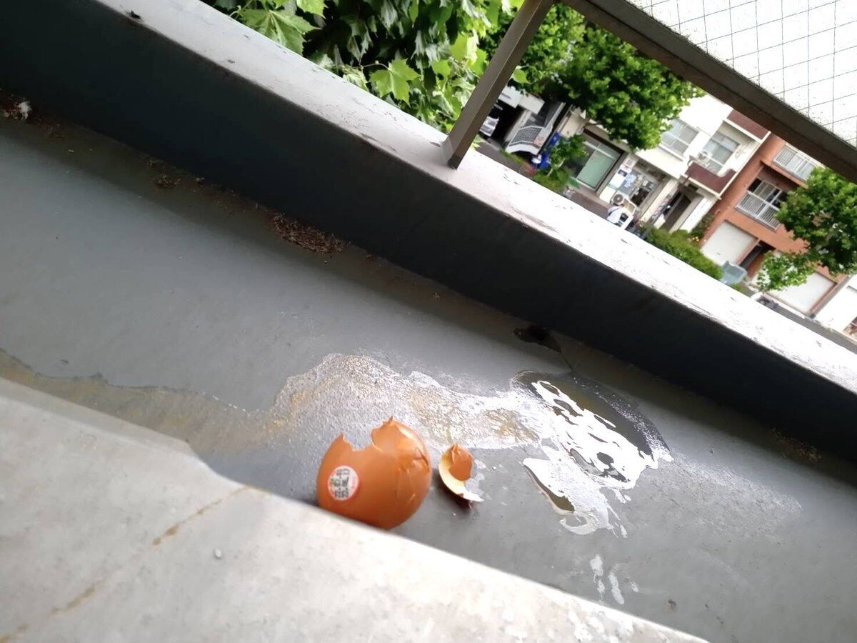 ツイッターを更新。自宅のエントランスらしき場所に生卵が投げつけられた写真を公開し、