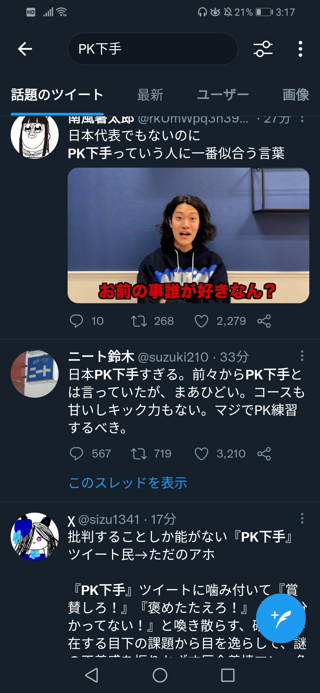 ツイッター民「PK下手とか言うやつはお前が蹴れよ」