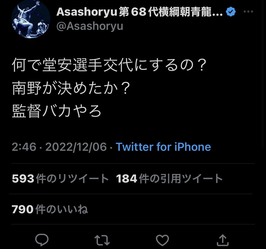 朝青龍、日本戦のお気持ち表明「監督バカやろ」