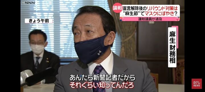 麻生、新聞記事にブチギレ「マスクはいつまでやるんだね?まじめに聞いてんだよ俺が💢」