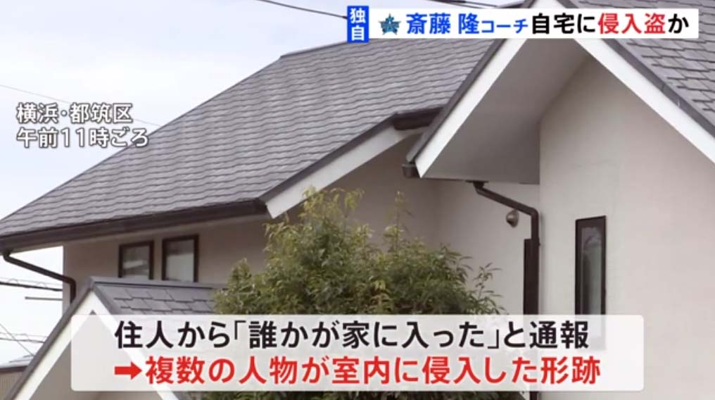 プロ野球横浜DeNAベイスターズの斎藤隆コーチの自宅に、けさ早く、何者かが侵入していたことがわかりました。警察は盗まれたものがあるとみて捜査しています。