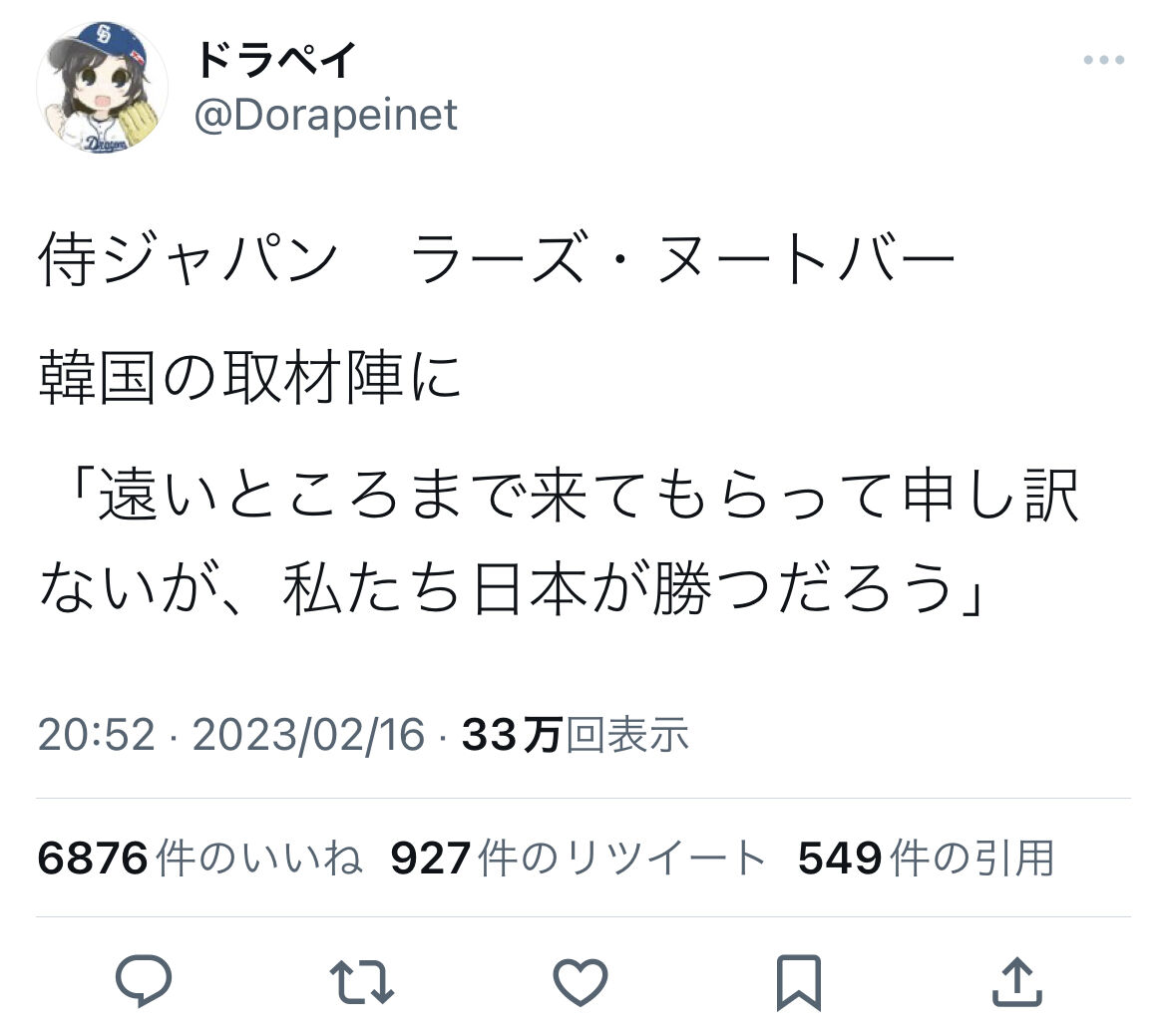 【悲報】WBC日本代表ヌードバー、韓国代表を煽ってしまう