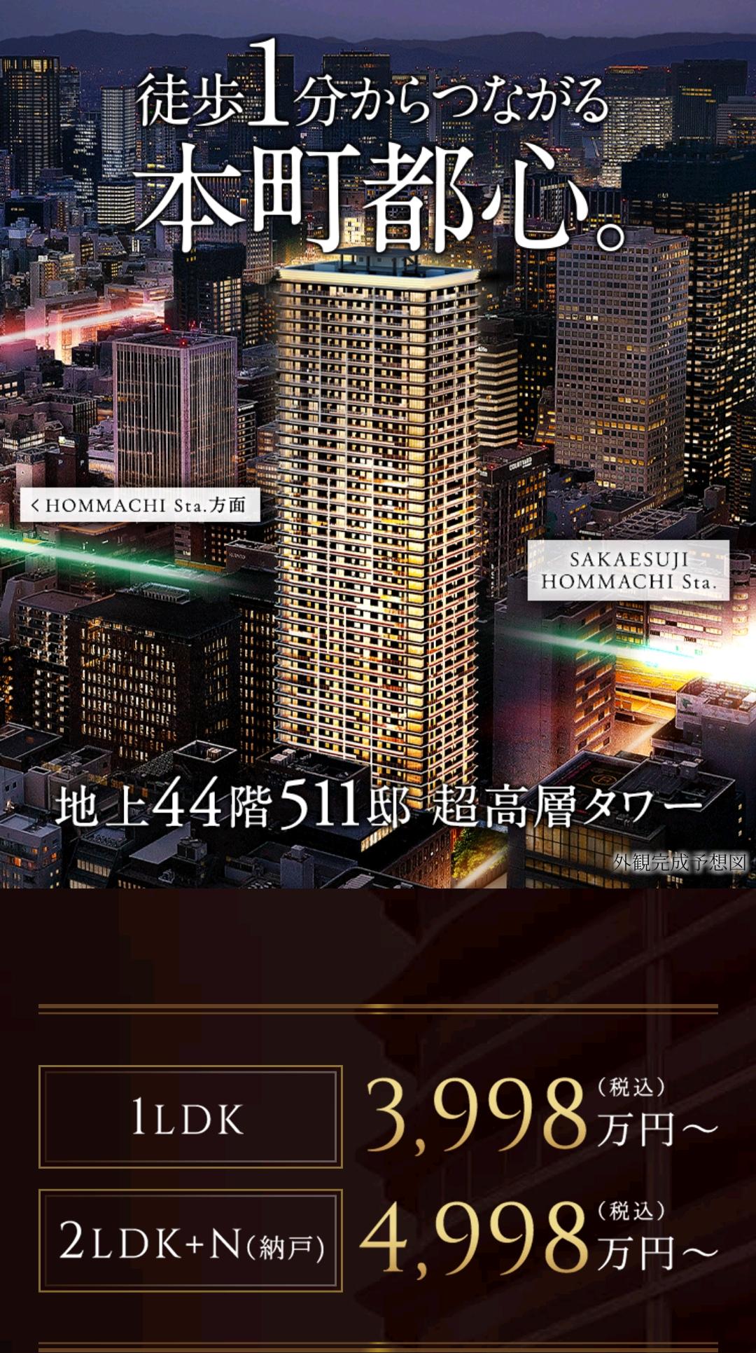こんな都心のタワマンが4000万で買える大阪凄いな