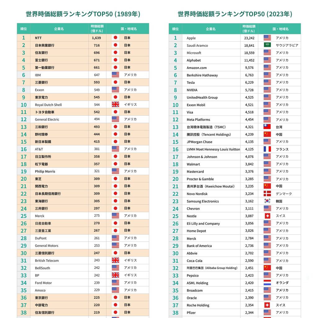 【悲報】日本企業、時価総額ランキングから完全に消える