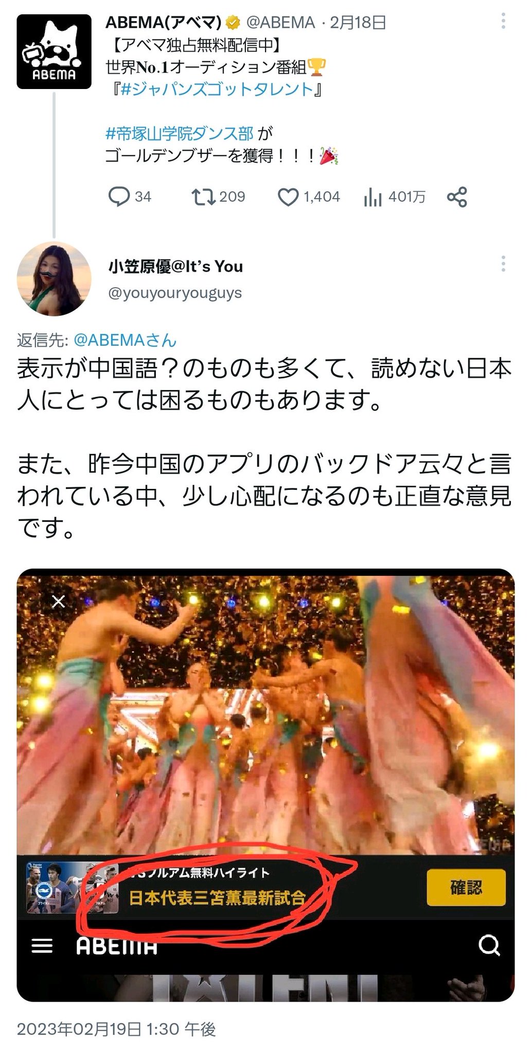 【悲報】Abema「日本代表三笘薫最新試合」←ツイッター民が中国語と誤解してしまう