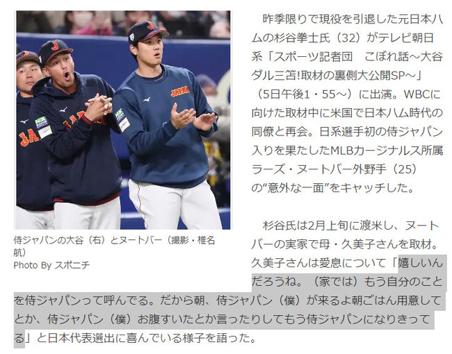 ヌートバー母「侍ジャパンー!朝ごはんよー!」←出てきそうなもの