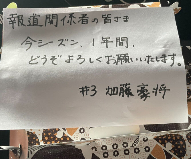 日ハム・加藤豪将、報道関係者にミスタードーナツを差し入れる