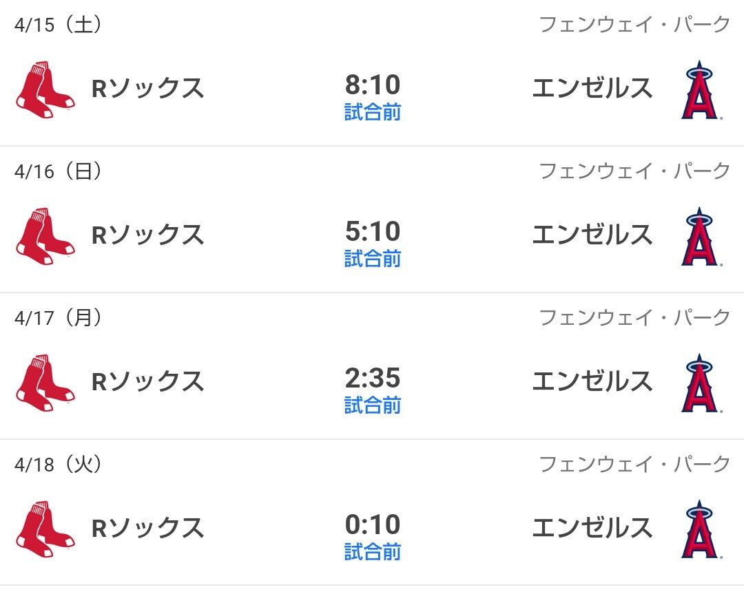 【悲報】エンゼルスvsレッドソックス4連戦、時間がぐちゃぐちゃ