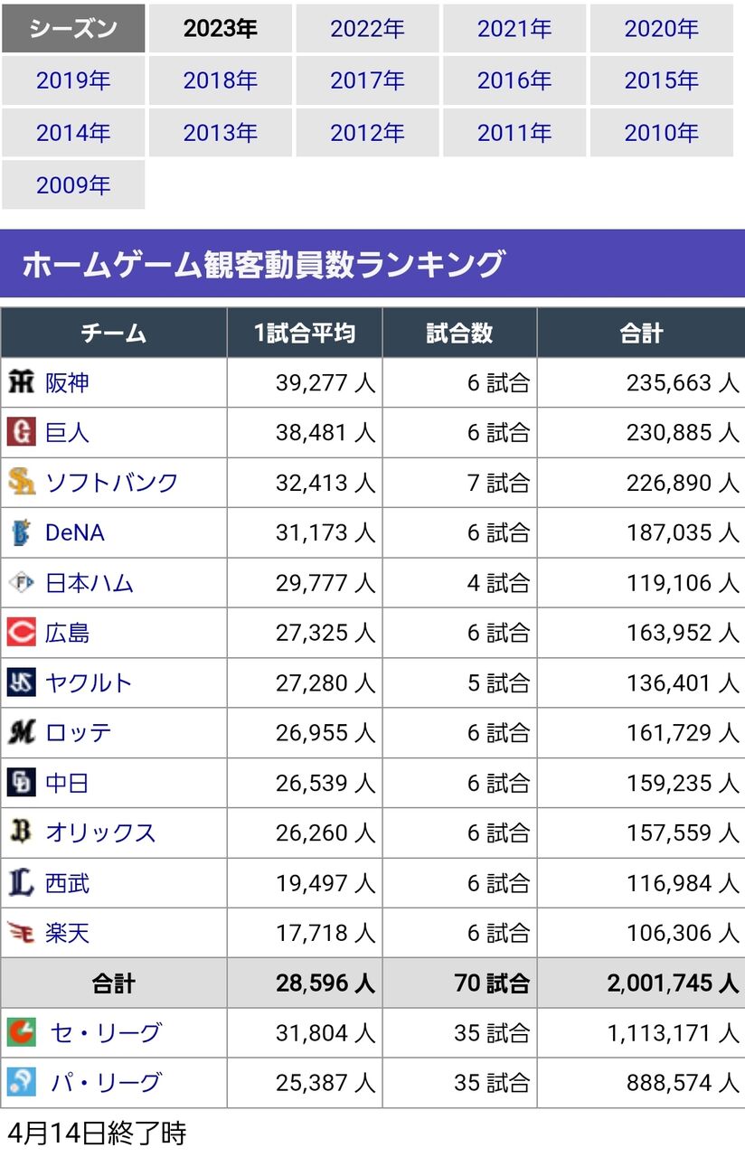 楽天は平日デーゲーム開催を2試合もやっての数字だから少ないのは分かるが