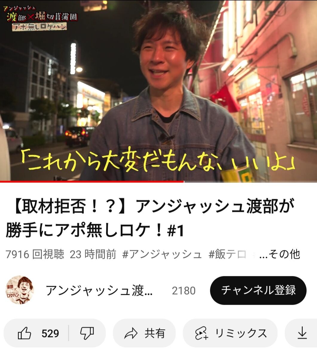 【朗報】アンジャッシュ渡部さん、新しいYoutubeチャンネル始動で世間からもう完全に許された模様