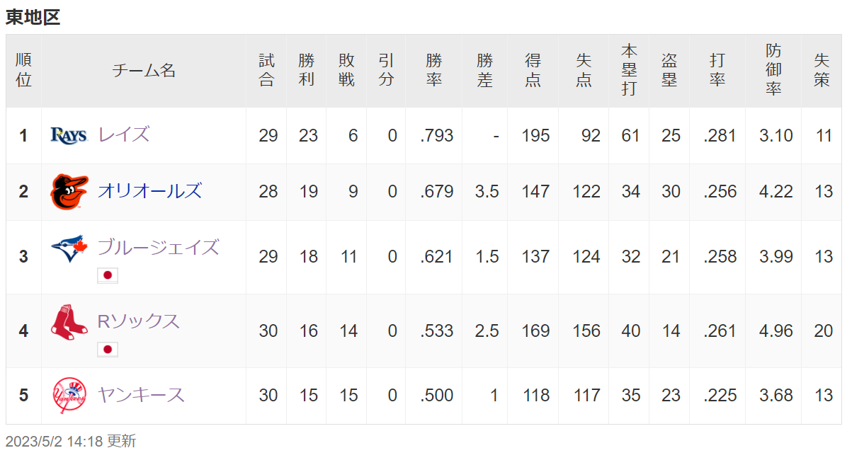 【悲報】名門ニューヨークヤンキースさん、最下位wwwwwwww