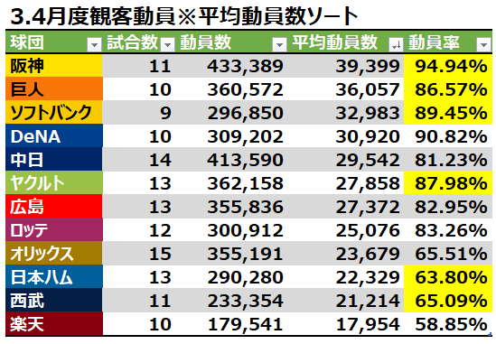プロ野球の観客動員率、やばい