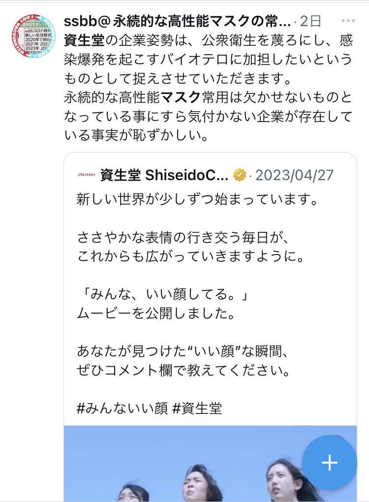 【悲報】資生堂の広告「マスクを外すとみんないい顔してる」→日本人ブチギレwwwマスクを外すな