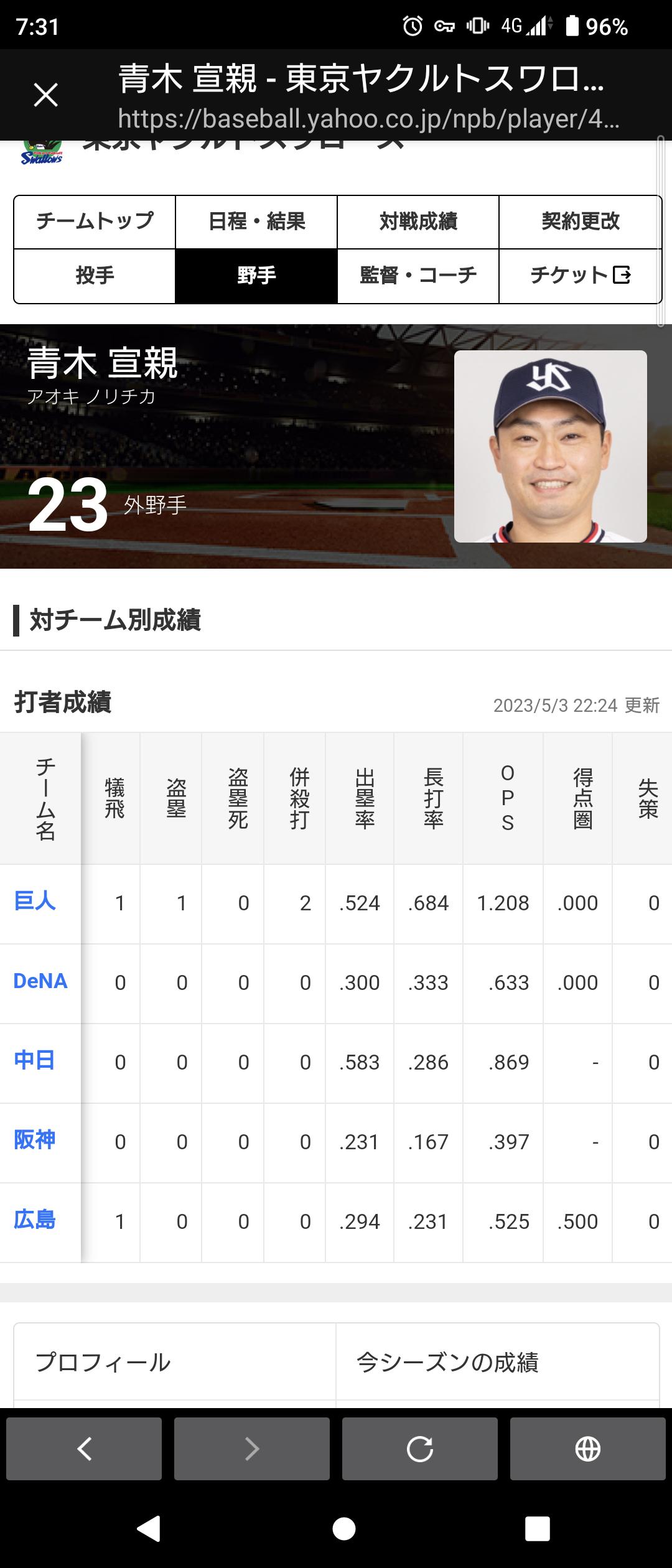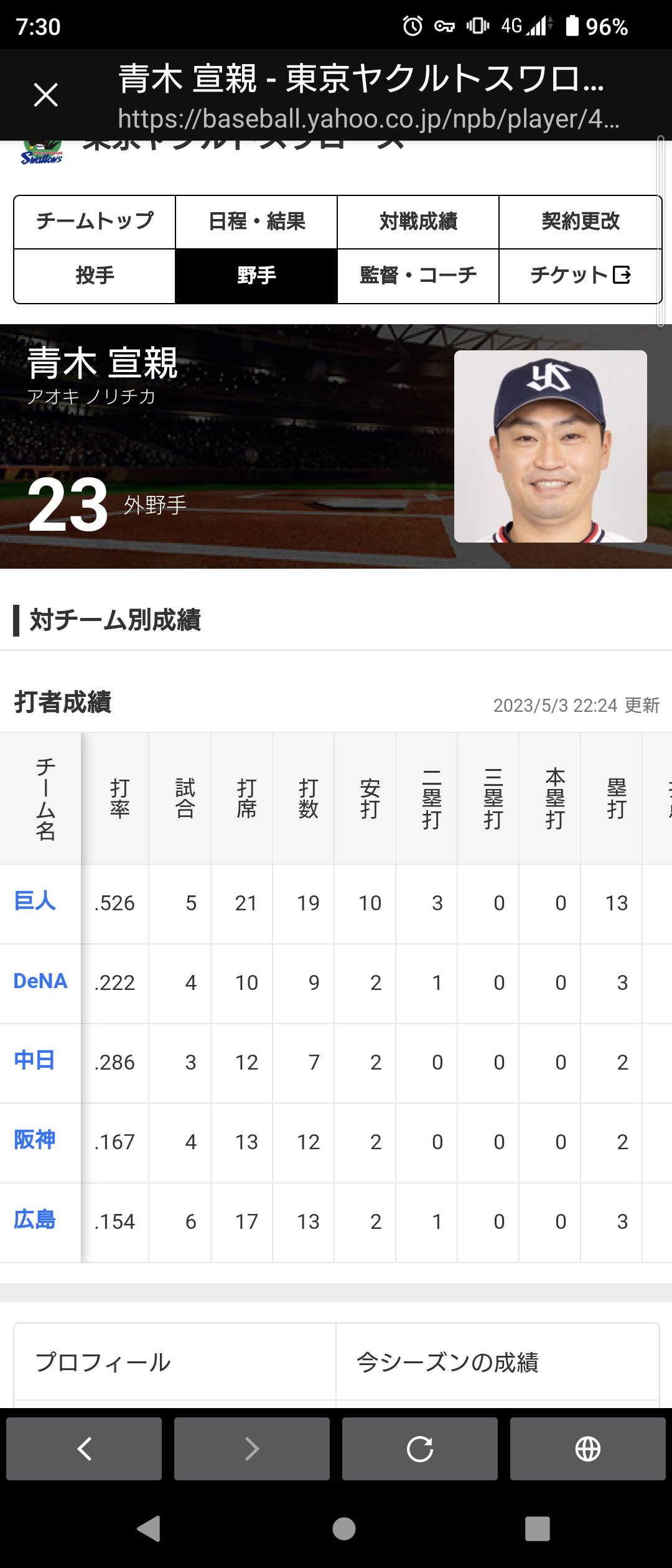青木宣親の巨人相手の成績wwwwwwwwwwwwww