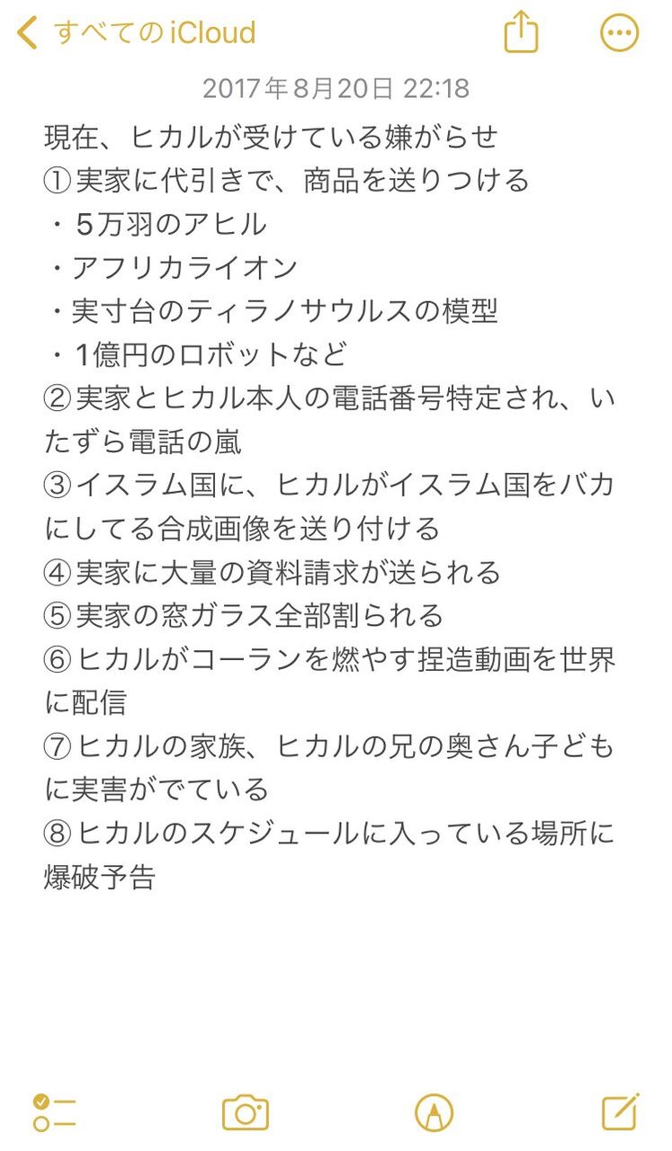 【悲報】ヒカル「2017年の炎上は壮絶だった」当時受けた嫌がらせを記したメモを公開