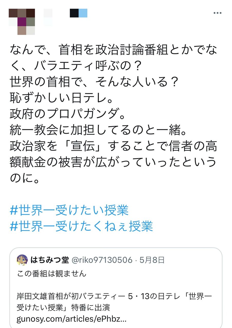 世界一受けたい授業「現役首相をゲストとして招いたら大ウケやろなぁ…w」