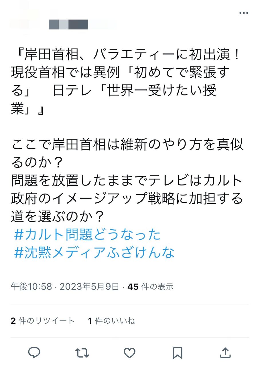 「カルト政府のイメージアップの片棒担ぎだ」