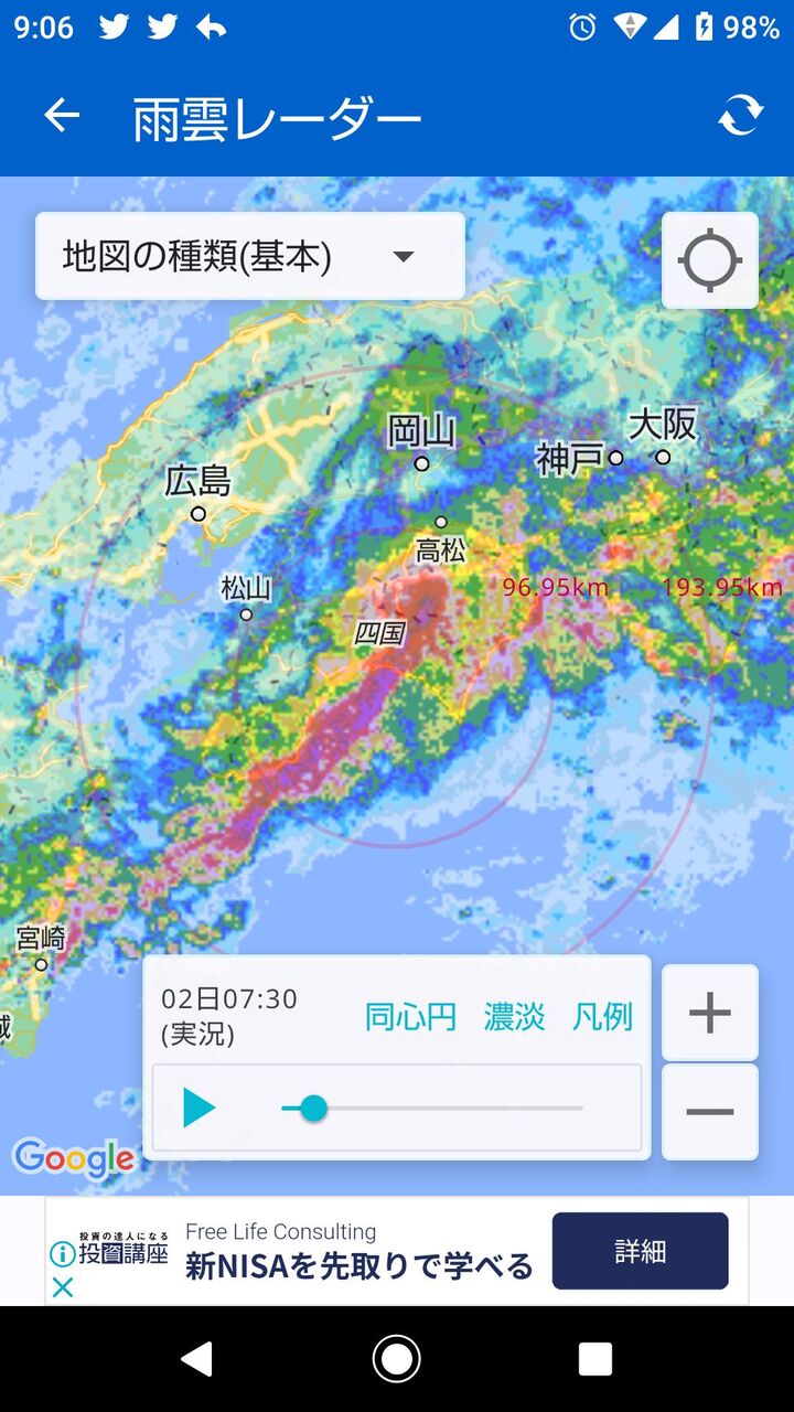 四国にやばい線状降水帯が発生、これが今から神戸大阪を襲う