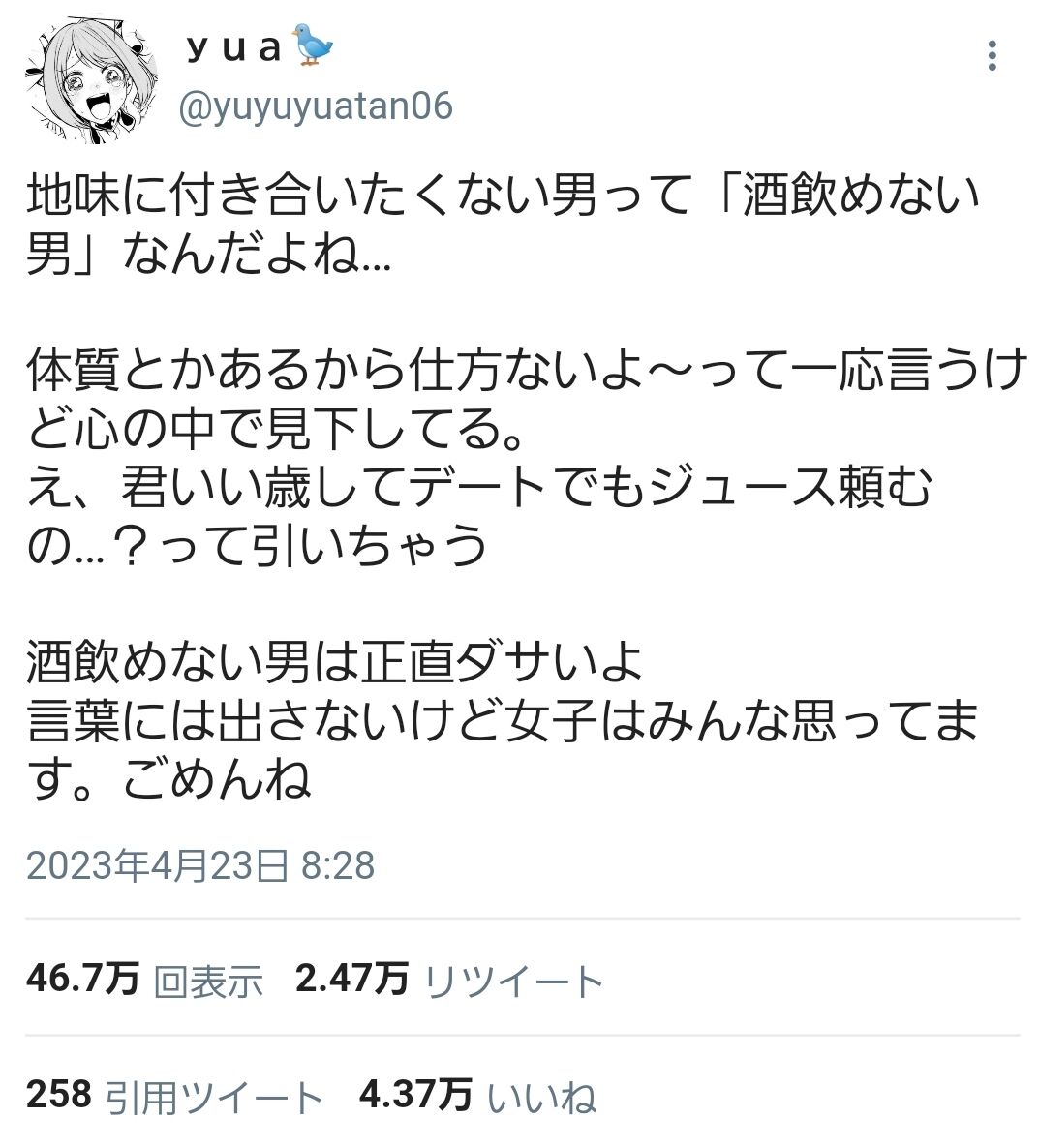 【緊急悲報】「酒が飲めない男」、メチャクチャ嫌われていたwwww