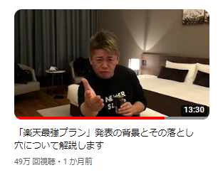 堀江貴文さん、楽天崩壊が嬉しすぎて楽天煽り動画をシリーズ化してしまう…