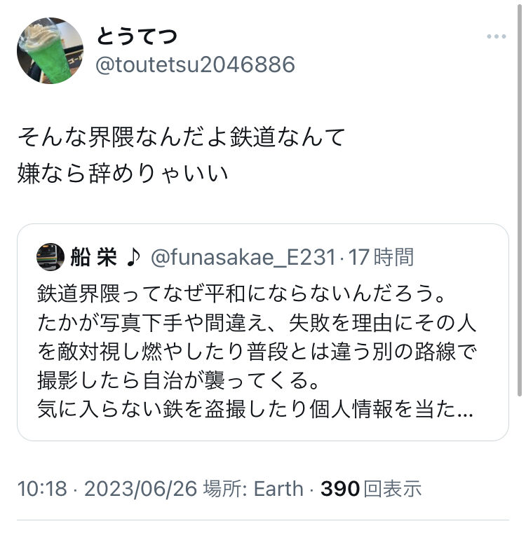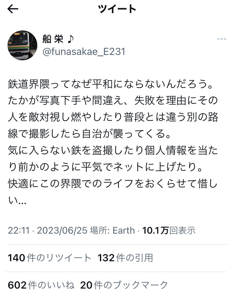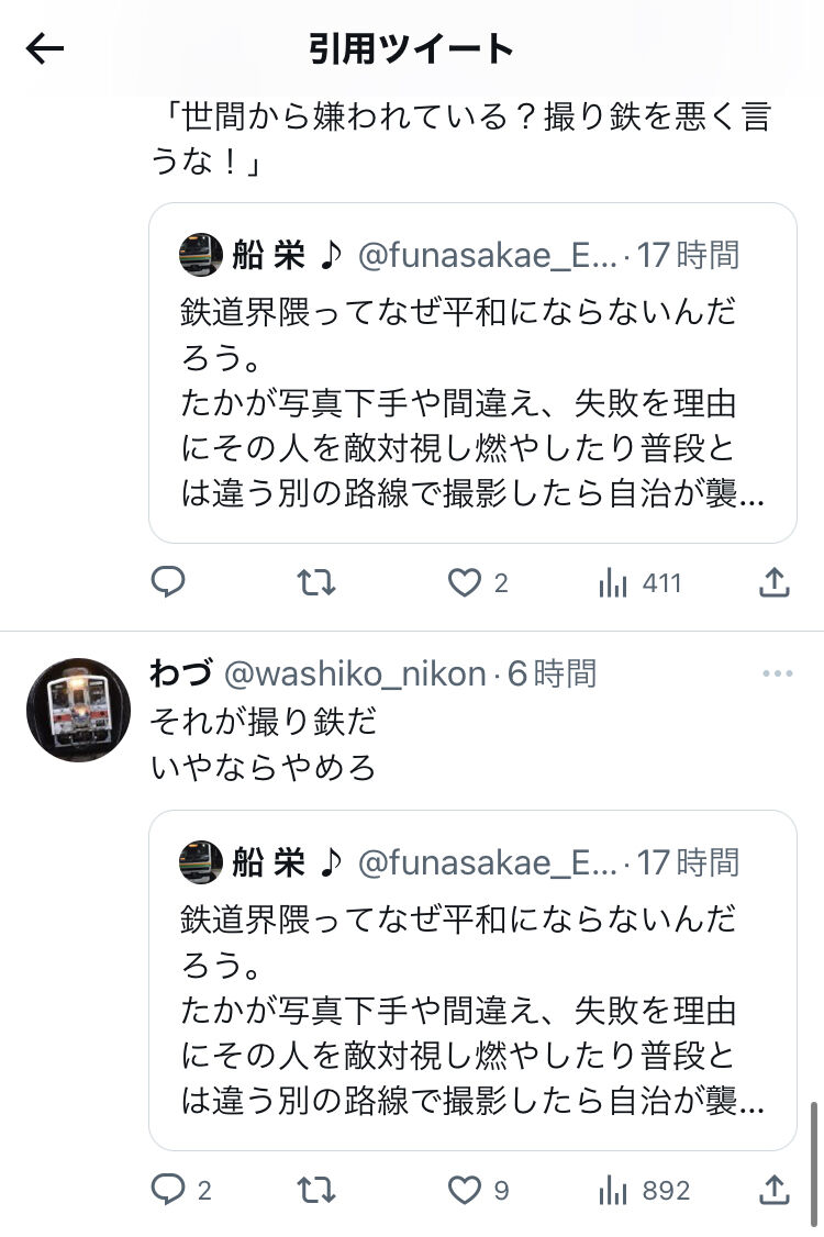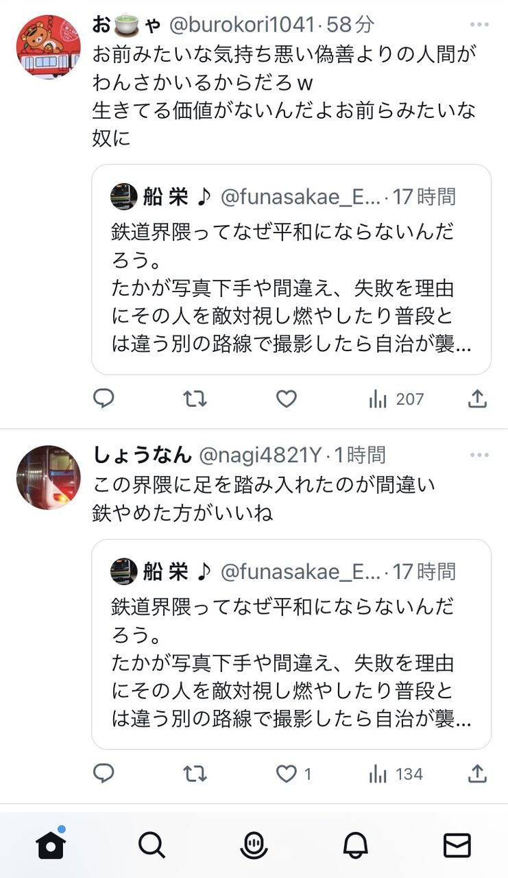 撮り鉄「鉄道界隈ってなんで攻撃的なの…😥」撮り鉄たち「嫌なら出てけー!」