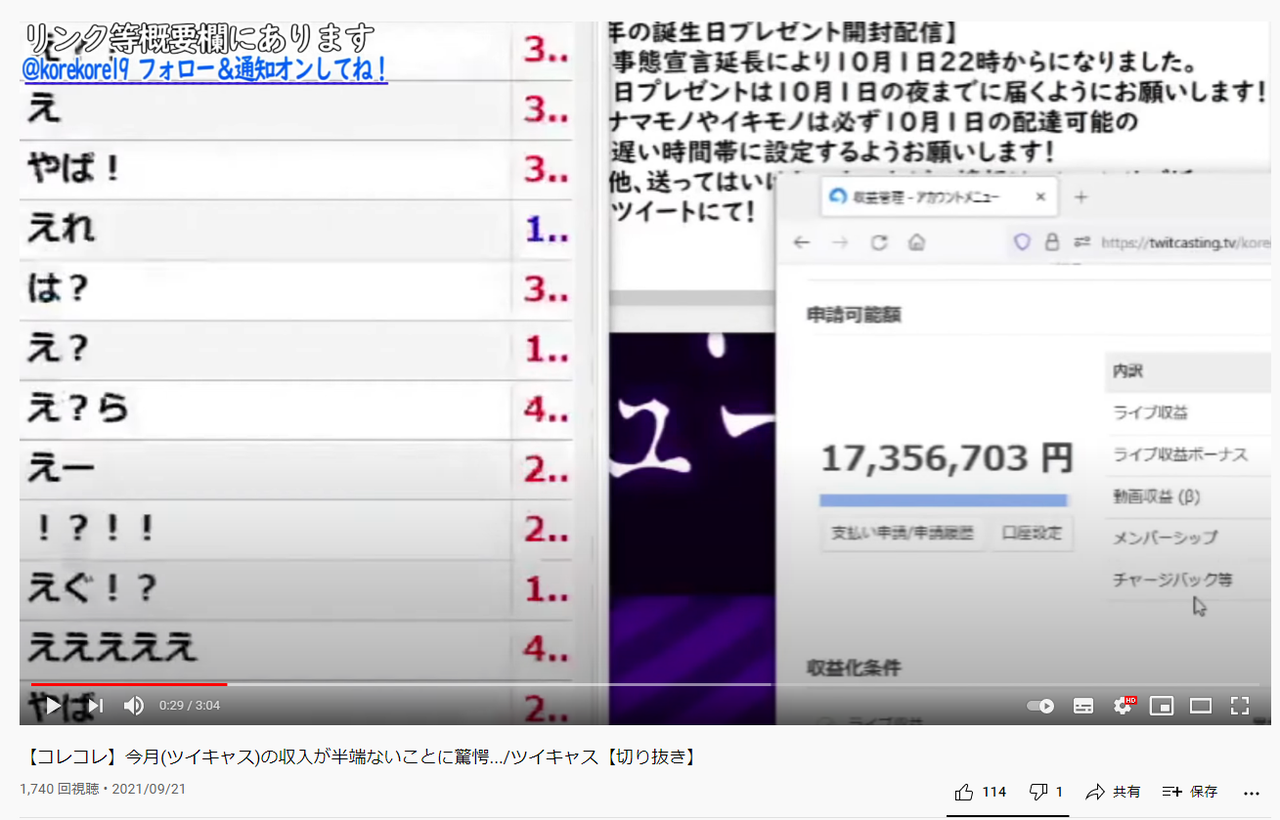 【悲報】配信王のコレコレさん、ツイキャスの月収を晒すwwwwwwww
