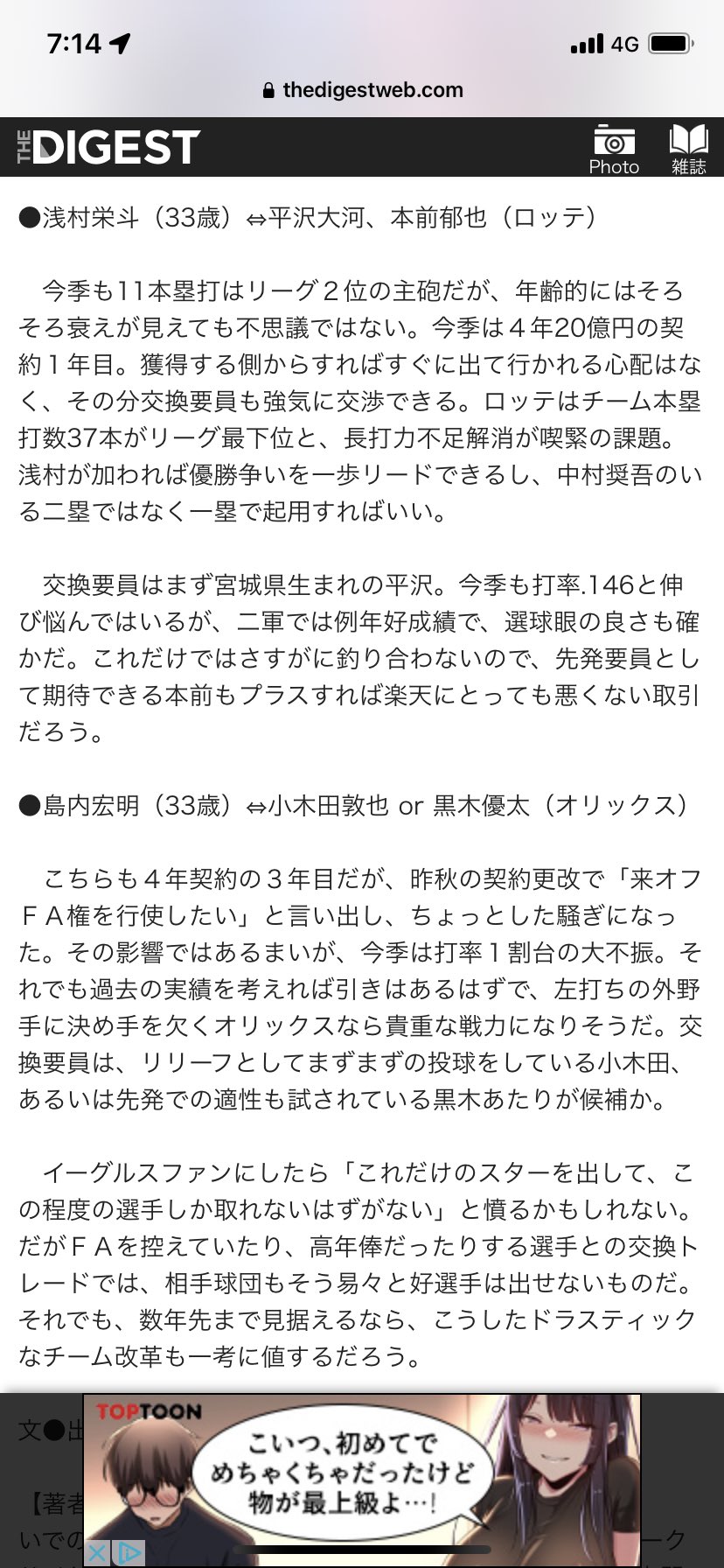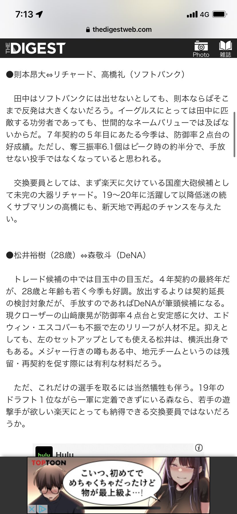 田中将と松原、則本とリチャード、松井裕と森敬斗、トレードか